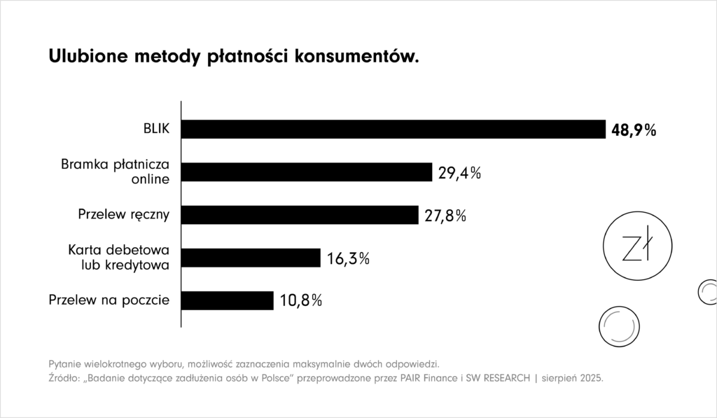 Warszawa, 29 października 2025 r. – Ponad 30% dorosłych Polaków deklaruje, że w ciągu ostatnich 12 miesięcy miało zaległe płatności i kontakt z działem windykacji (21,3% – raz, a 9,7% – wielokrotnie). Najczęstszy powód zaległości jest prozaiczny – zapomnienie o płatności. W przypadku kontaktu z firmą windykacyjną respondenci preferują e-mail, a przy spłacie długu najczęściej chcieliby zapłacić BLIKiem. To najważniejsze wnioski z nowego, badania przeprowadzonego przez SW Research na reprezentatywnej grupie Polaków, na zlecenie PAIR Finance – wiodącej europejskiej firmy fintech w obszarze windykacji cyfrowej, która działa już w Polsce.